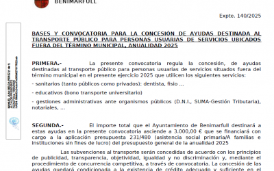 Bases para LA CONCESIÓN DE AYUDAS DESTINADA AL TRANSPORTE PÚBLICO PARA PERSONAS USUARIAS DE SERVICIOS UBICADOS FUERA DEL TÉRMINO MUNICIPAL, ANUALIDAD 2025